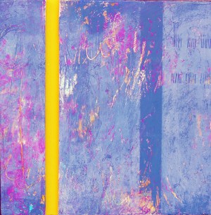 Cold wax, oil paint, collage on wood cradle 10 by 10 inches